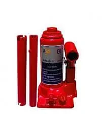 Hydraulic jacks tend to be stronger and can lift heavier loads higher, and include bottle jacks and floor jacks. A BOTTLE JACK resembles a bottle in shape, having a cylindrical body and a neck, from which the hydraulic ram emerges. In a bottle jack the piston is vertical and directly supports a bearing pad that contacts the object being lifted.