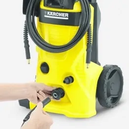 The “K4” features a durable and powerful water-cooled motor. This high-pressure cleaner with Quick Connect gun and 6 m high-pressure hose is designed for the occasional removal of moderate soiling. The Vario Power spray lance (VPS) and dirt blaster are suitable for cleaning cars, garden fences, bicycles, etc. The water pressure can be adjusted by simply twisting the VPS to suit the surface being cleaned. The dirt blaster with rotating pencil jet effortlessly removes stubborn dirt. An integrated water filter reliably protects the pump against the ingress of dirt particles. Also included: P&C universal cleaner.