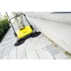 S 650 Sweeps five times faster than with a brush: the convenient S 650 makes it possible and is easy on your back. The sturdy, corrosion-resistant sweeper has a total sweeping width of 650 mm and features a powerful roller brush and two side brushes. The device is ideal for areas of 40 mý or larger. The machine draws the waste directly into the 16-litre waste container and delivers outstanding cleaning results. The robust sweeper is extremely easy to manoeuvre. The extra long bristles on the side brushes ensure thorough cleaning right up to the edges. The height-adjustable push handle with two height positions and thermo handle can be adjusted to the height of the individual operator and completely folded down if necessary for compact, upright storage. The sweeping container can be easily removed and safely set down and emptied without coming into contact with the dirt.